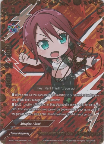 -【Act】 if you have another 《Afterglow》 or <Ako Udagawa> on your field, put up to two cards from your opponent's drop zone on the bottom of their deck in any order. If you put one or more, draw a card. You may only use this ability once per turn.