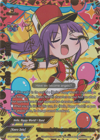 - You may only cast this card if a total size of 《Hello, Happy World!》 character on your field is 3 or more.
