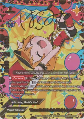 - [Counter] 【Act】 If this card in the soul of your 《Hello, Happy World!》, you may pay 1 gauge. If you do, [Stand] that card. You may only use this ability once per turn.