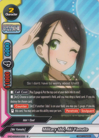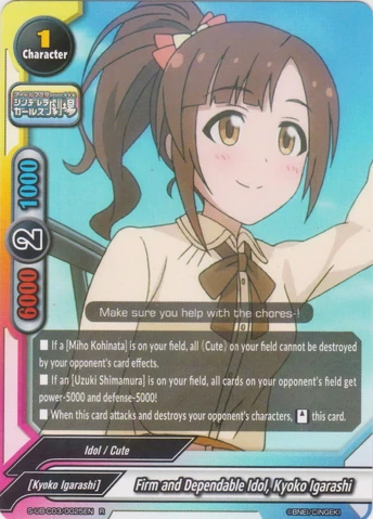 - [Counter] 【Act】 During your attack phase, if <Kyoko Igarashi> and <Miho Kohinata> is on your field, destroy a character on your opponent's center.
