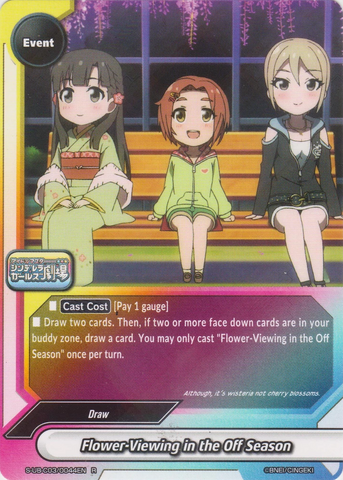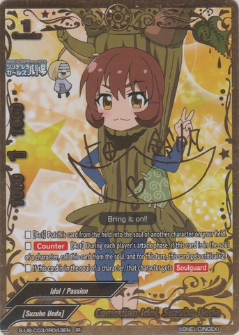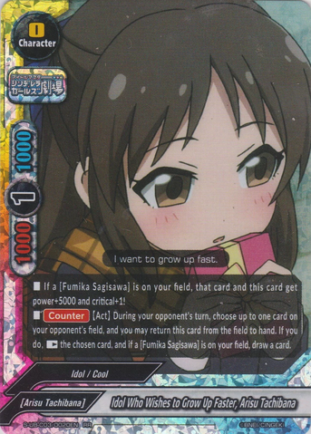 - [Counter] 【Act】 Call an 《Idol》 character other than <Kaede Takagaki> from your drop zone to another area by paying its [Call Cost]. You may only use this ability once per turn.