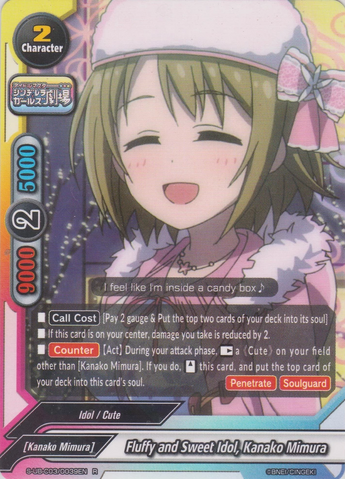 - [Counter] 【Act】 During the battle of this card, you may pay 1 gauge. If you do, for this battle, this card gets power+10000, defense+10000, [Penetrate], and [Counterattack].