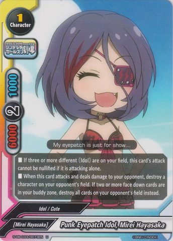 - If three or more different 《Idol》 is on your field, abilities of all 《Idol》 on your field cannot be nullified by your opponent's card effects, and they get critical+1!