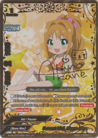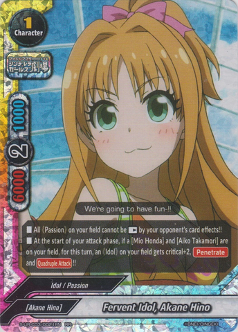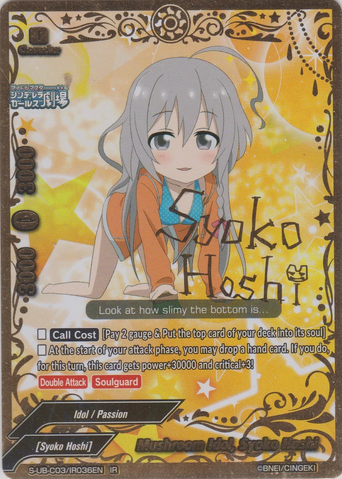 - If there's a <Syoko Hoshi> on your field, all 《Idol》 on your field can attack your opponent even if there's a character in the center.