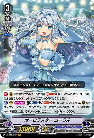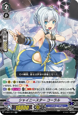 ACT [R] [1/Turn]: COST[S-Blast (2)], and this unit gets [Power] +10000 until end of turn. If you have a vanguard with "Coral" in its card name, this unit gets [Power] +5000 until end of turn.