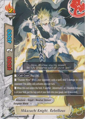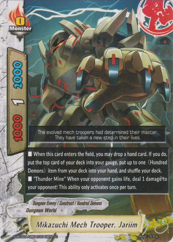 - "Thunder Mine" When your opponent gains life, deal 1 damage to your opponent! This ability only activates once per turn.