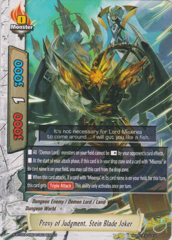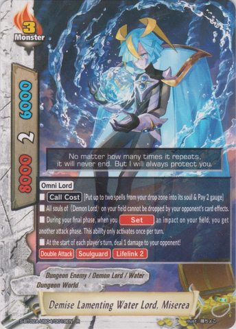- "Judgement of the Cold-blooded King, Miserea" on your field with this card in its soul gets [Soulguard], power+10000, and defense+10000!