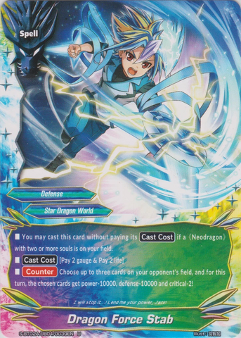 - [Counter] 【Act】 During each player's attack phase, choose a 《Neodragon》 on your field, and put up to one 《Dragonarms》 from your hand or deck into its soul. If you searched your deck, shuffle it. You may only use this ability once per turn.