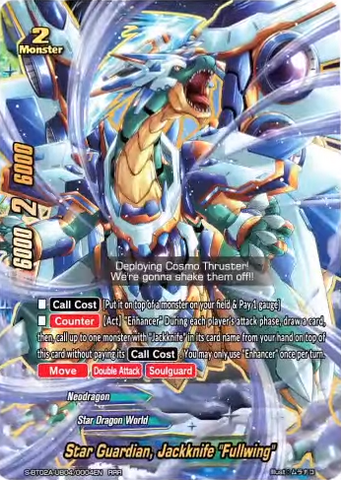 - [Counter] 【Act】 "Enhancer" During each player's attack phase, draw a card, and call up to one monster with "Jackknife" in its card name from your hand on top of this card without paying its [Call Cost]. You may only use "Enhancer" once per turn.