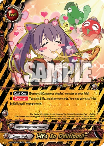 - [Counter] You gain 2 life, and draw two cards. You may only cast "I-It's So Delicious!!" once per turn.
