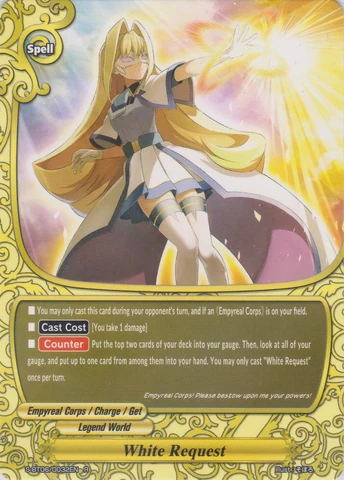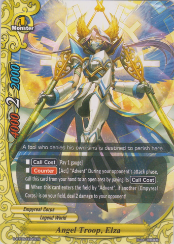 - At the start of your opponent's final phase, if you were dealt 5 or more damage during this turn, you gain 5 life, deal 5 damage to your opponent, and put up to one 《Empyreal Corps》 impact from your deck into your hand, and shuffle your deck!