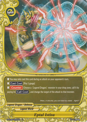 - [Counter] Choose a 《Legend Dragon》 from your drop zone and call it to your field by paying its [Call Cost]. Change the target of the attack to that monster.