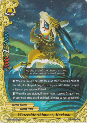 - When this card is sent to the drop zone from your field or hand, if a 《Legend Dragon》 is on your field, destroy one spell or item on your opponent's field.