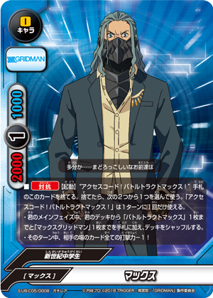 - [Counter] 【Act】 [Transform] into up to one "Max Gridman" from your hand or drop zone by paying its [Transform] cost. You may only use this ability once per turn.