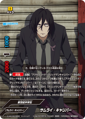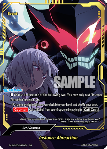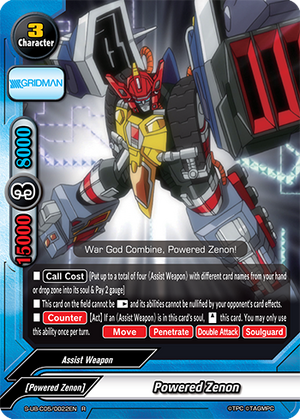 - [Counter] 【Act】 During your attack phase, if you are [Transform] into <Gridman>, call up to one 《Assist Weapon》 character from your hand or drop zone by paying its [Call Cost]. You may only use this ability once per turn.