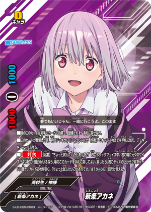 - At the start of your attack phase, if you have a <Rikka Takarada> or <Akane Shinjo> on your field, for this turn, this card gets power+5000 and [Double Attack].