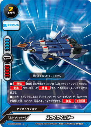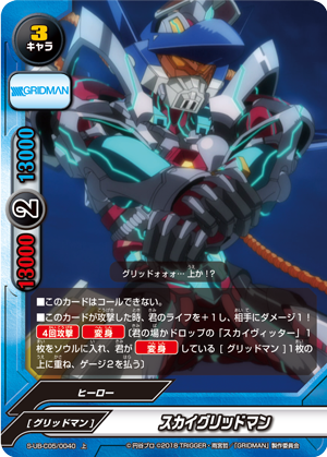 - [Counter]【Act】[Transform] into up to one "Sky Gridman" from your hand or drop zone by paying its [Transform] cost. You may only use this ability once per turn.