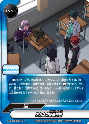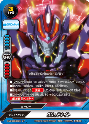 - You may only cast this card if your cards have attacked two times or more this turn, and you are [Transform] into <Gridman>.