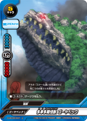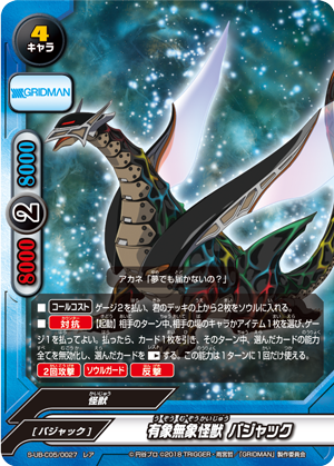 - [Counter] 【Act】 Call up to one 《Kaiju》 character from your hand to a different area by paying its [Call Cost]. You may only use this ability once per turn.