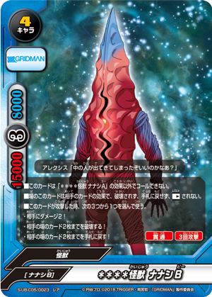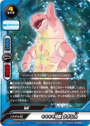 - At the end of the turn that this card is destroyed, call up to one "**** Kaiju, Nanashi B" from your hand or deck. If you searched your deck, shuffle it.