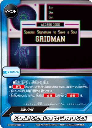 - When you [Transform], you may put this card from your field into the soul of a <Gridman> on your field. If you do, draw a card, and put a hand card on the bottom of your deck.