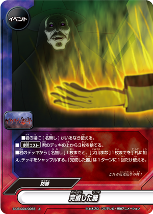 - Put up to one <Nanashi> and up to one <Inuyama Mana> from your deck into your hand, and shuffle your deck. You may only cast "A Completed Vessel" once per turn.