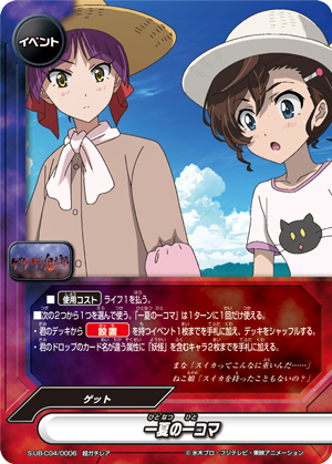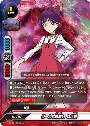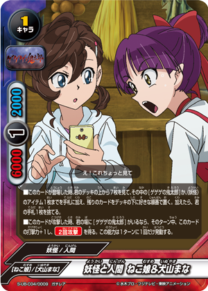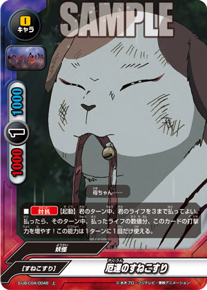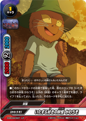 - "Cat Informants" When this card enters the field, put the top card of your deck into your gauge and you gain 1 life! Then, if if a <Gegege no Kitaro> is on your field, draw two cards! You may only use "Cat Informants" once per turn.