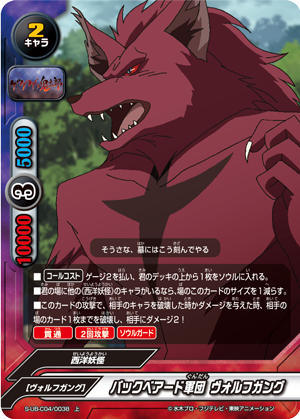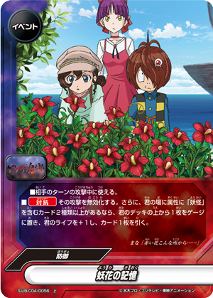 - When this card attacks, if you have three or more 《Youkai》 on the field, put the top card of your deck into your gauge, you gain 1 life, and draw a card.
