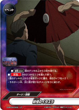 - When this card enters the field, look at the top 7 cards of your deck, put up to one <Gegege no Kitaro> or 《Youkai》 item from among them into your hand, and put the rest on the bottom of your deck in any order. If you put one, drop a hand card.