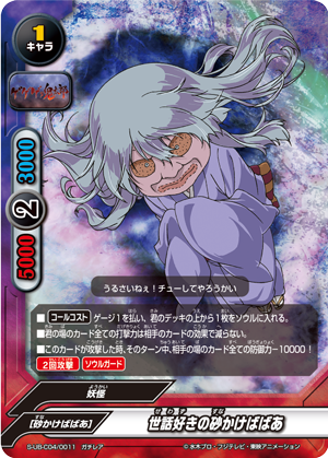 - When this card attacks, if a <Gegege no Kitaro> is on your field, for this turn, this card gets critical+1 and [Double Attack]. This ability only activates once per turn.