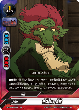 - When this card enters the field, you may drop a hand card. If you do, choose up to 2 《Youkai》 characters from your deck, put up to one of them into your hand, drop the rest, and shuffle your deck.