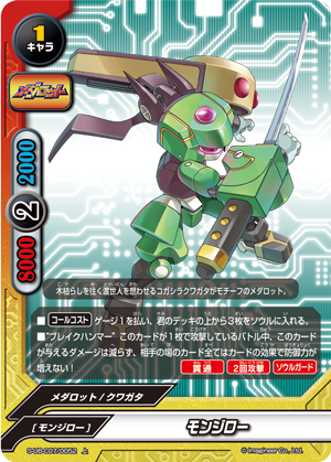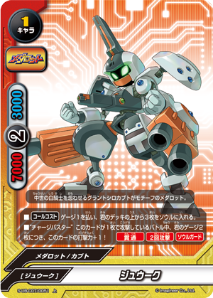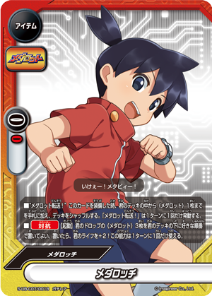 - When this card enters the field, call up to one 《Medabot》 from your drop zone on top of this card by paying its [Call Cost].