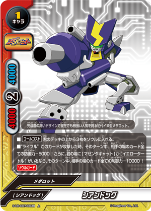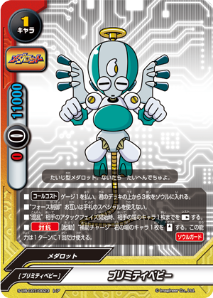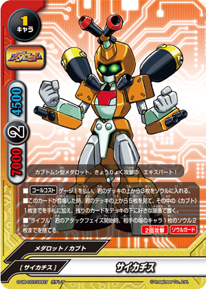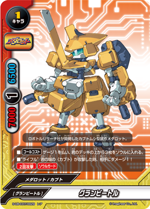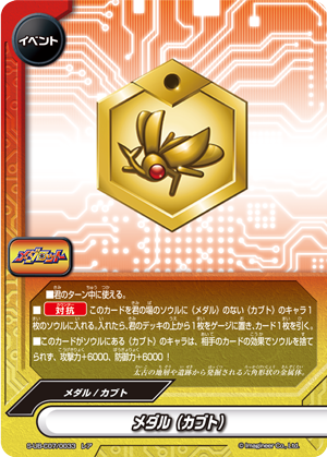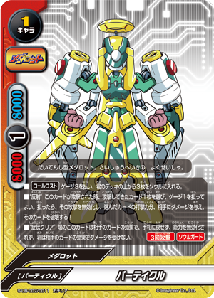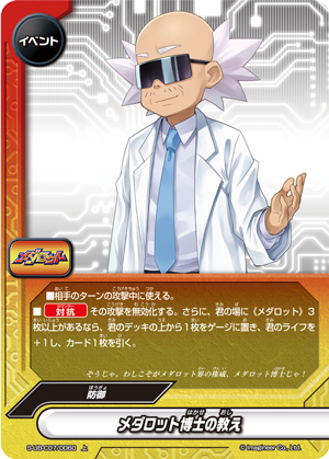 - [Counter] Nullify the attack. Then, if three or more 《Medabot》 are on your field, put the top card of your deck into your gauge, you gain 1 life and draw a card.
