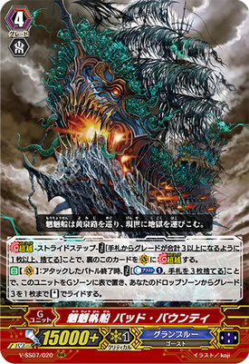 ACT [V]: COST[S-Blast (1) & Turn a card from your G zone face up], put this unit into your G zone face up, your opponent chooses four cards each from his or her rear-guards and drop zone, and binds them. For every four cards in your opponent's bind zone, you draw a card, and your opponent chooses a card from his or her hand, and binds it.