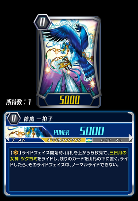 [V]: At the beginning of your ride phase, look at five cards from the top of your deck, ride one Goddess of the Crescent Moon, Tsukuyomi, and put the rest on the bottom of your deck. If you rode, you cannot normal ride during that ride phase.