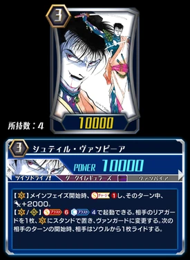 [V]: When its attack hits a vanguard, if its [Power] was 12000 before attacking, stand one of your rear-guards.