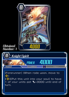 [V/R]: During your turn, if your soul has Knight Spirit, [Power] +3000.