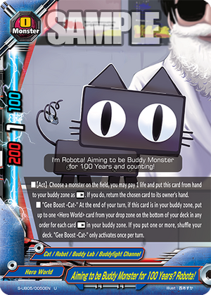 - "Gee Boost -Cat-" At the end of your turn, if this card is in your buddy zone, you may put up to one <Hero World> card from your drop zone on the bottom of your deck in any order for each card at [Rest] in your buddy zone. If you put one or more, shuffle your deck. "Gee Boost -Cat-" only activates once per turn.