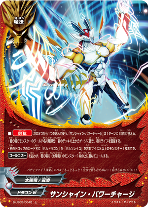 - [Counter]【Act】If your flag is "Dragon Zwei" or "Dragon Drei", you may drop this hand card. If you do, for this turn, all cards with "Dragon" in their attributes on your field cannot be destroyed or returned to hand and their abilities cannot be nu