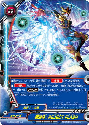 - [Counter] Nullify the attack. Then, if you are [Impact Transform] into a card, put the top card of your deck into your gauge, you gain 1 life and draw a card.