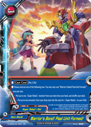 - When a soul is put into your 《Super Robot》, put the top card of your deck into your gauge, and draw a card. This ability only activates once per turn.