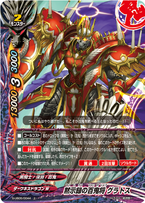 - At the end of the battle that this card attacked, if no monsters are on your opponent's field, drop up to 2 of your opponent's gauge, destroy up to two cards on your opponent's field, and deal 2 damage to your opponent!