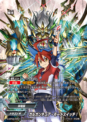 - When this card enters the field, for this turn, all 《Deity Dragon Tribe》 on your field get power+10000! Then, if it entered the field by [G•EVO], destroy up to two cards on your opponent's field, and draw two cards!