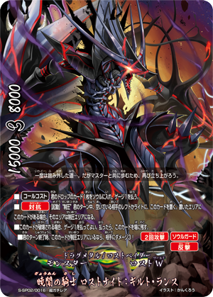 - [Counter] Choose and [Rest] up to one card on your opponent's field for each 《Lostvader》 on your field. Then, for this turn, the chosen cards cannot [Stand].