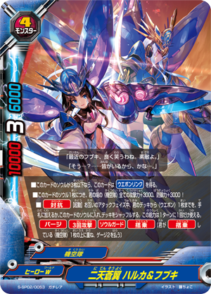 - When your 《Galaxy Exalt》 enters the field or [Transform] put the top two cards of your deck into your gauge, and draw a card. This ability only activates once per turn.
