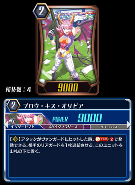 [R]: When its attack hits a vanguard, [S-Blast (2)] to retire one of your opponent's rear-guards. Put this unit on the bottom of your deck.