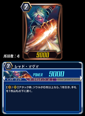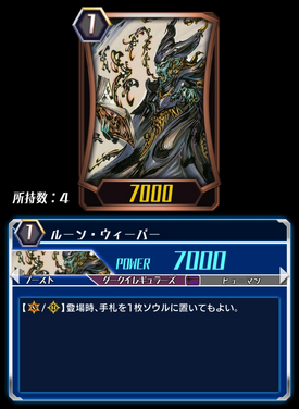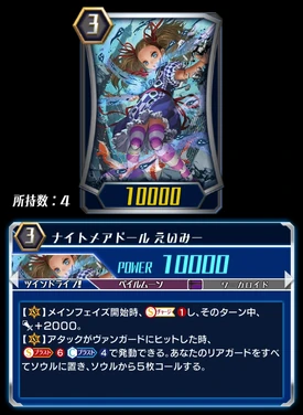 [R]: During your turn, this unit gets [Power] +2000 for each Demon Chariot of the Witching Hour in your soul. If you have 3 or more, then this unit gets [Critical] +1.