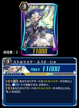 [V] [LB (4)]: If you have three or more Battle Sister rear-guards, [C-Blast (2)] to draw two cards.