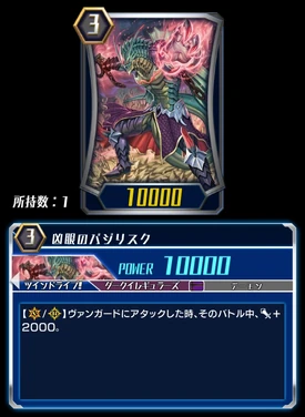 [V] [LB (4)] [1/Turn]: At the end of the battle that this unit attacked a vanguard, [C-Blast (2)] and [Retire 2 of your rear-guards] to stand this unit, and draw a card. This unit loses "Twin Drive!!" until end of turn.