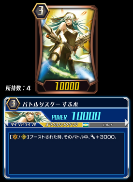 [R]: During your turn, if you have a Battle Sister vanguard, this unit gets [Power] +3000.